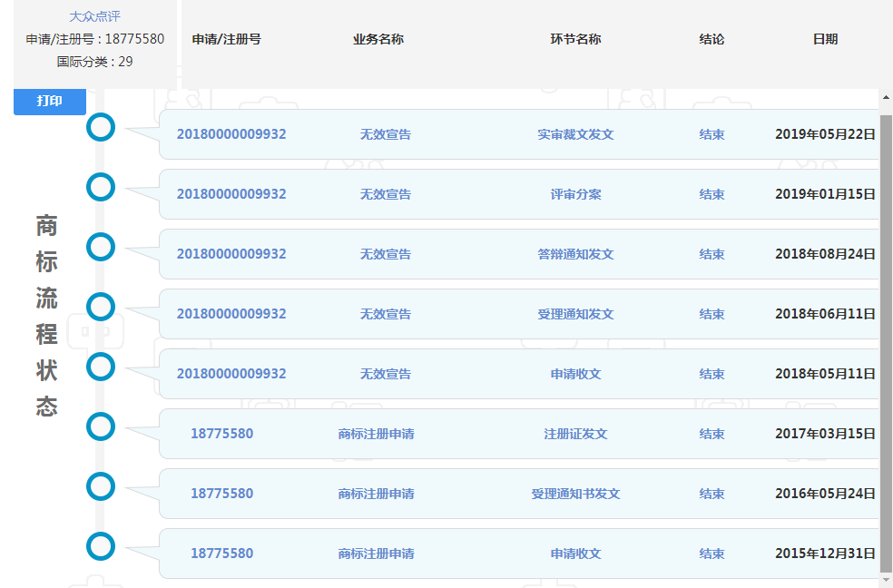 2015年其它公司申請(qǐng)注冊(cè),2018年大眾點(diǎn)評(píng)發(fā)起無(wú)效宣告申請(qǐng),2019年商標(biāo)局正式判決為無(wú)效!